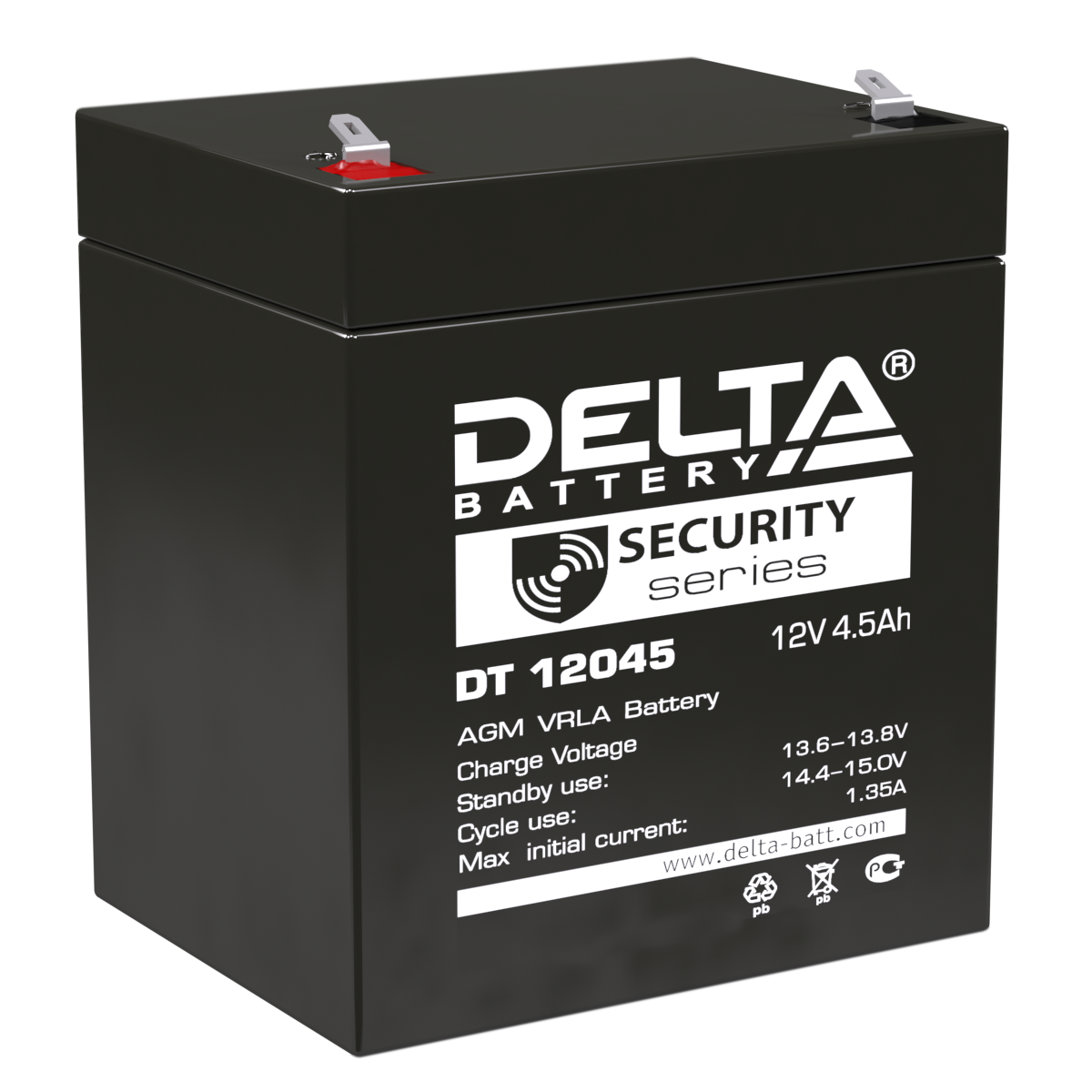 Особенность Delta DT 12045 в емкости ‒ 4.5 Ач, что делает аккумулятор эффективным в работе и позволяет долгое устройствам работать долгое время. Невысокий саморазряд ‒ до 3% месяц при 25 °С обеспечивает легирование свинцовых пластин кальцием. Также это позволяет решеткам обрести конструктивную прочность. Аккумулятор подходит для ИБП, эксплуатируемых в системах безопасности, аварийного освещения, электронном тестовом оборудовании, кассовых аппаратах и в прочих системах, требующих постоянного питания без сбоев.